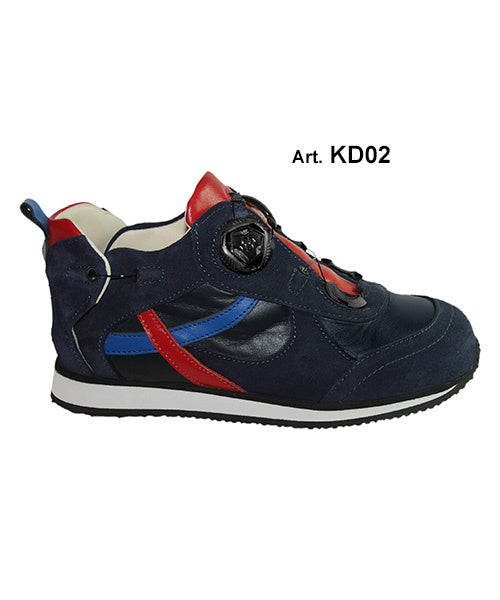 Footwear designed to be worn with foot orthoses. An innovative system for putting on shoes. The heel of the footwear is completely tiltable, which allows you to easily insert the foot and the orthosis into the shoe. The toe of the shoe is wide, which allows the front of the orthosis to be precisely positioned to the very end of the shoe. The instep is very high to accommodate the closing elements of the orthosis. The whole thing is secured with a system of strings that tighten on the foot using the unique, patented Boa system. The sole of the footwear is flexible, shaped like a boat to help the foot roll. Optional Flexi version of the sole, with even greater flexibility. The heel of the footwear can be semi-circular, helping the foot roll, or flat, for children who cannot walk and wear stiff orthoses. Optionally, the inside footwear is made of perforated, breathable material.