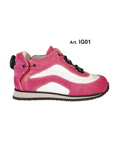 Obuwie przeznaczone do noszenia wraz z ortezami stopy. Nowatorski system zakładania obuwia. Pięta obuwia jest całkowicie uchylna, co pozwala na bezproblemowe wsunięcie do buta stopy wraz z ortezą. Nosek obuwia jest szeroki, co pozwala na dokładne dosunięcie przodu ortezy do samego końca buta. Podbicie bardzo wysokie, tak aby zmieścić elementy zamykające ortezy. Całość zabezpieczona systemem żyłek zaciskających się na stopie poprzez unikalny, opatentowany system Boa. Podeszwa obuwia jest elastyczna, ukształtowana na zasadzie łódki, aby wspomagać przetoczenie stopy. Opcjonalnie wersja Flexi podeszwy, o jeszcze większej elastyczności. Pięta obuwia może być półokrągła, wspomagająca przetoczenie stopy, lub płaska, dla dzieci nie chodzących, noszących sztywne ortezy. Opcjonalnie obuwie wewnątrz wykonane jest z perforowanego, oddychającego materiału.