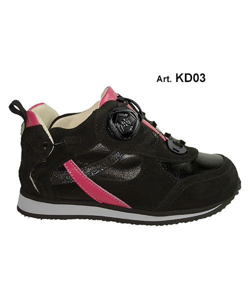 Obuwie przeznaczone do noszenia wraz z ortezami stopy. Nowatorski system zakładania obuwia. Pięta obuwia jest całkowicie uchylna, co pozwala na bezproblemowe wsunięcie do buta stopy wraz z ortezą. Nosek obuwia jest szeroki, co pozwala na dokładne dosunięcie przodu ortezy do samego końca buta. Podbicie bardzo wysokie, tak aby zmieścić elementy zamykające ortezy. Całość zabezpieczona systemem żyłek zaciskających się na stopie poprzez unikalny, opatentowany system Boa. Podeszwa obuwia jest elastyczna, ukształtowana na zasadzie łódki, aby wspomagać przetoczenie stopy. Opcjonalnie wersja Flexi podeszwy, o jeszcze większej elastyczności. Pięta obuwia może być półokrągła, wspomagająca przetoczenie stopy, lub płaska, dla dzieci nie chodzących, noszących sztywne ortezy. Opcjonalnie obuwie wewnątrz wykonane jest z perforowanego, oddychającego materiału.