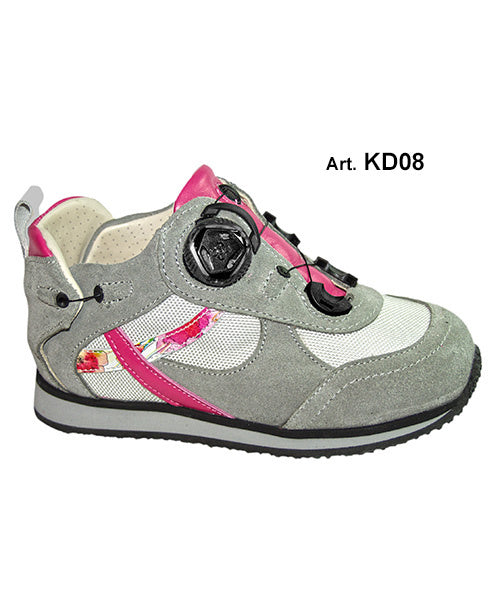 Obuwie przeznaczone do noszenia wraz z ortezami stopy. Nowatorski system zakładania obuwia. Pięta obuwia jest całkowicie uchylna, co pozwala na bezproblemowe wsunięcie do buta stopy wraz z ortezą. Nosek obuwia jest szeroki, co pozwala na dokładne dosunięcie przodu ortezy do samego końca buta. Podbicie bardzo wysokie, tak aby zmieścić elementy zamykające ortezy. Całość zabezpieczona systemem żyłek zaciskających się na stopie poprzez unikalny, opatentowany system Boa. Podeszwa obuwia jest elastyczna, ukształtowana na zasadzie łódki, aby wspomagać przetoczenie stopy. Opcjonalnie wersja Flexi podeszwy, o jeszcze większej elastyczności. Pięta obuwia może być półokrągła, wspomagająca przetoczenie stopy, lub płaska, dla dzieci nie chodzących, noszących sztywne ortezy. Opcjonalnie obuwie wewnątrz wykonane jest z perforowanego, oddychającego materiału.