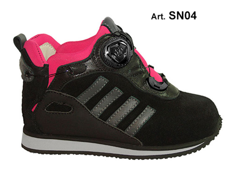 Obuwie przeznaczone do noszenia wraz z ortezami stopy. Nowatorski system zakładania obuwia. Pięta obuwia jest całkowicie uchylna, co pozwala na bezproblemowe wsunięcie do buta stopy wraz z ortezą. Nosek obuwia jest szeroki, co pozwala na dokładne dosunięcie przodu ortezy do samego końca buta. Podbicie bardzo wysokie, tak aby zmieścić elementy zamykające ortezy. Całość zabezpieczona systemem żyłek zaciskających się na stopie poprzez unikalny, opatentowany system Boa. Podeszwa obuwia jest elastyczna, ukształtowana na zasadzie łódki, aby wspomagać przetoczenie stopy. Opcjonalnie wersja Flexi podeszwy, o jeszcze większej elastyczności. Pięta obuwia może być półokrągła, wspomagająca przetoczenie stopy, lub płaska, dla dzieci nie chodzących, noszących sztywne ortezy. Opcjonalnie obuwie wewnątrz wykonane jest z perforowanego, oddychającego materiału.