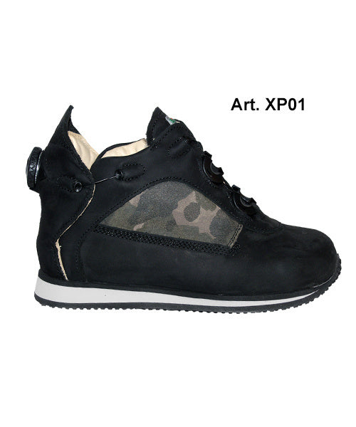 Obuwie przeznaczone do noszenia wraz z ortezami stopy. Nowatorski system zakładania obuwia. Pięta obuwia jest całkowicie uchylna, co pozwala na bezproblemowe wsunięcie do buta stopy wraz z ortezą. Nosek obuwia jest szeroki, co pozwala na dokładne dosunięcie przodu ortezy do samego końca buta. Podbicie bardzo wysokie, tak aby zmieścić elementy zamykające ortezy. Całość zabezpieczona systemem żyłek zaciskających się na stopie poprzez unikalny, opatentowany system Boa. Podeszwa obuwia jest elastyczna, ukształtowana na zasadzie łódki, aby wspomagać przetoczenie stopy. Opcjonalnie wersja Flexi podeszwy, o jeszcze większej elastyczności. Pięta obuwia może być półokrągła, wspomagająca przetoczenie stopy, lub płaska, dla dzieci nie chodzących, noszących sztywne ortezy. Opcjonalnie obuwie wewnątrz wykonane jest z perforowanego, oddychającego materiału.